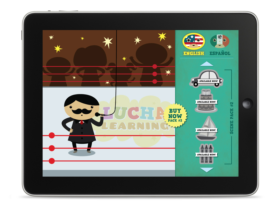 Lucha Learning Vocabulary is a bilingual educational app for children that specifically aims to teach children both English and Spanish vocabulary while helping to develop their motor skills through a creative, interactive and engaging interface. Children are encouraged to interact with and explore each scene filled with fun graphics, audio and vocabulary in both English and Spanish.